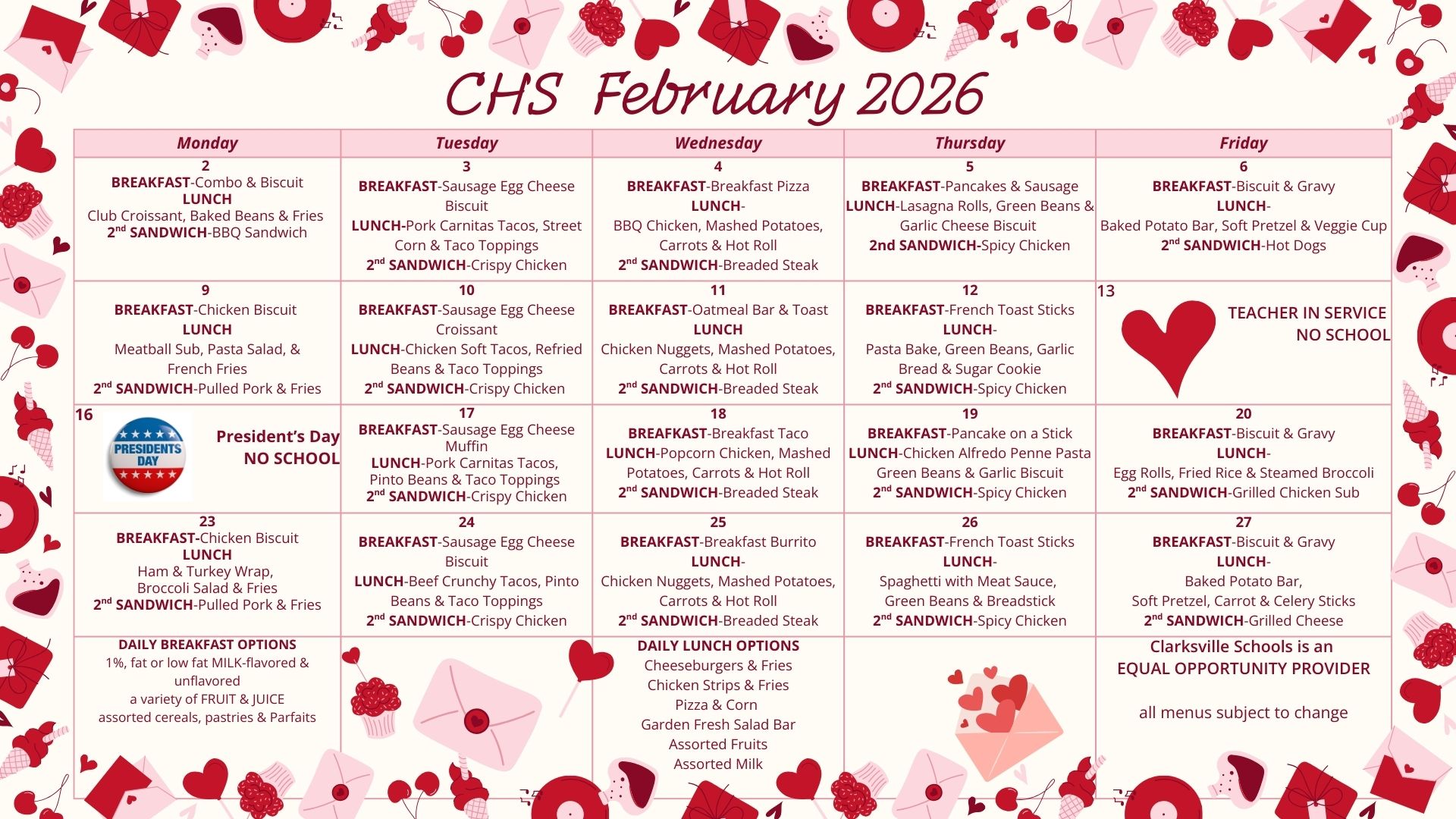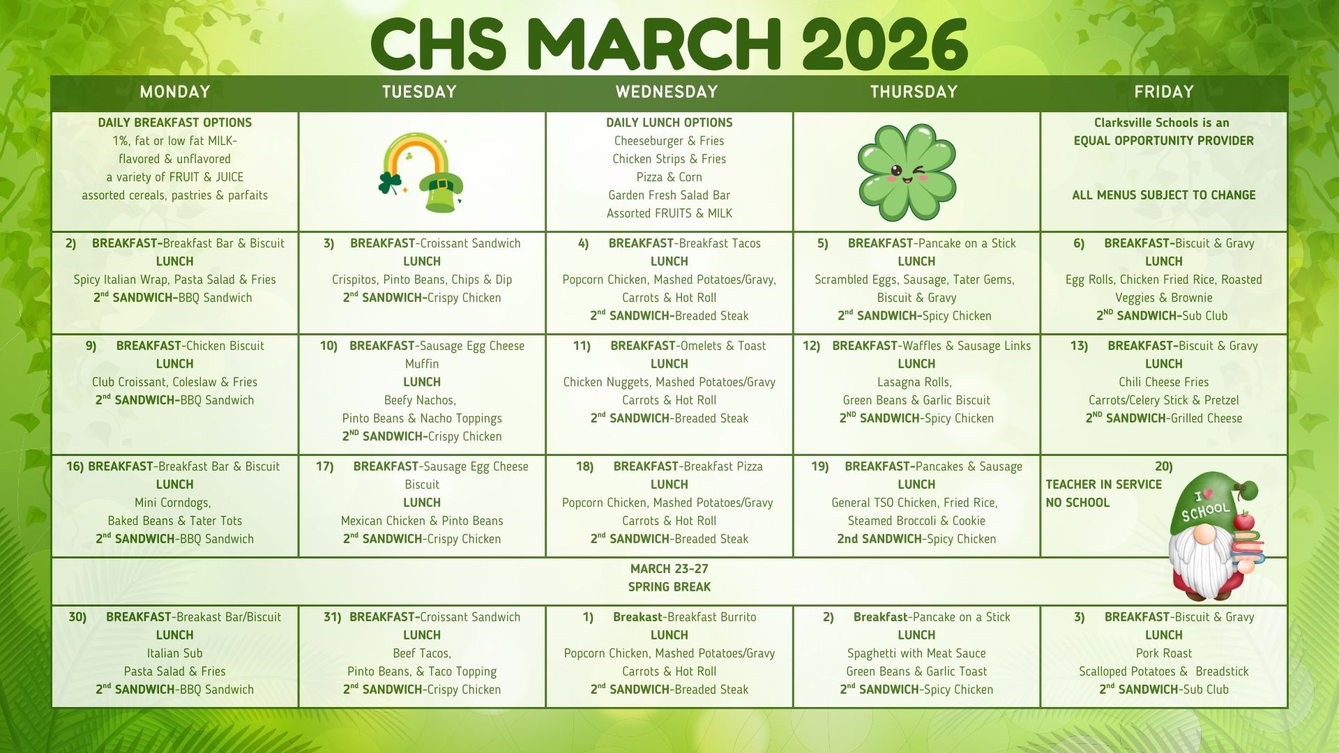 ALL MENUS SUBJECT TO CHANGE