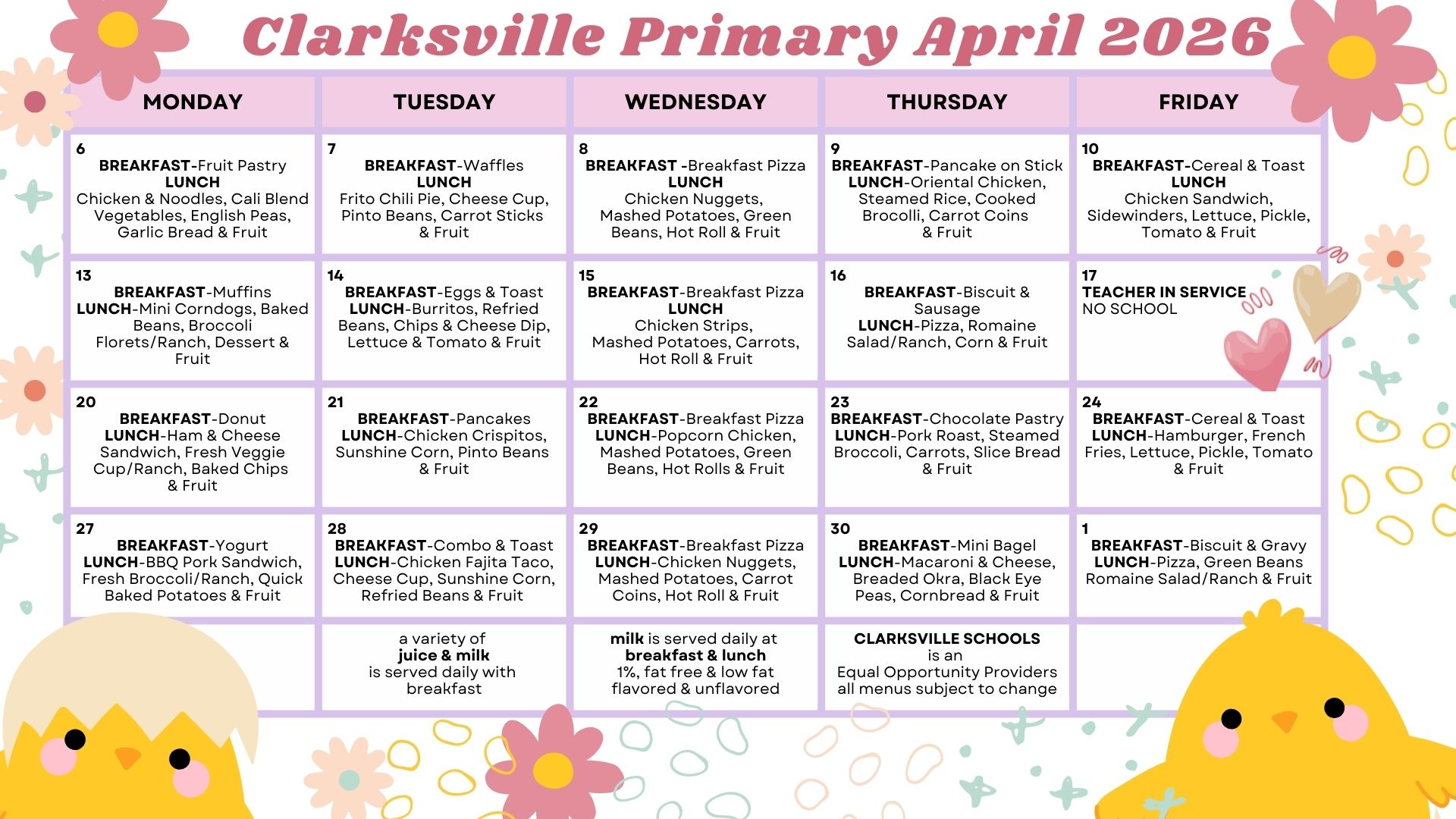 Milk is served DAILY with breakfast & lunch